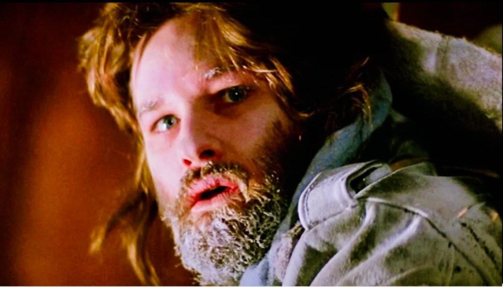 Set in a bleak and desolate Antarctic winter, the film opens as a helicopter swoops through the snowy mountains chasing down a dog with gunfire, as it sprints across the icy wasteland towards a research facility inhabited by American scientists. Alerted to the commotion, the team rush out to be greeted by the dog and the marksman who appears hellbent on destroying the animal, but who himself is shot and killed by one of the Americans. An investigation follows with lead character MacReady, played by Carpenter regular Kurt Russell (Escape From New York), visiting the Norwegian base that the helicopter appears to have come from, which is found burnt out and with signs of horror and bloodshed inside.