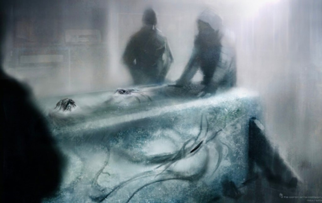 The intro to the movie features glossy cinematography, as the helicopter travels across beautifully shot snowy landscapes. Kate is blown away as she is brought to the spacecraft, which they estimate has been buried for 1000 years. But she soon learns the real purpose of her visit as she is shown the survivor who is catacombed in a coffin of ice, perfectly preserved and ready for her to excavate, so it can be studied. On their first night the team celebrate their discovery, dreaming of Nobel prizes and the admiration that will follow their work.