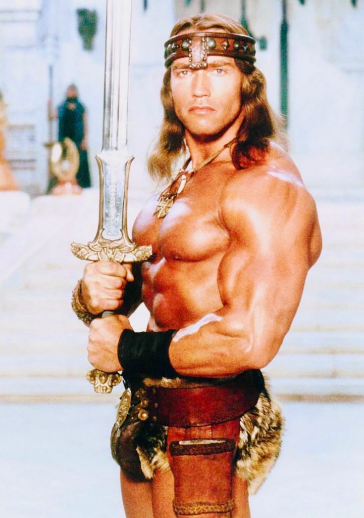 A fight ensues with Thulsa’s goons in which Valeria dies, leading a heartbroken Conan to one final battle before he defeats and beheads his nemesis, and naturally ends the film as the hero. This 1982 movie is a classic fantasy film of its time, where we see old school choreographed fight scenes where riders on horseback are being speared and sword fighting results in gory kills with bursts of bright red blood. It looks very dated now, but epitomises pre CGI fantasy and for anyone interested in a time of practical effects and stunt men putting themselves in danger, it remains a joy to watch. Arnie plays Conan as a strong warrior, but who also has vulnerabilities. He’s not invincible, he gets hurt, wounded and captured at points throughout the story, but he’s ultimately brave, fearless and ends up triumphant.