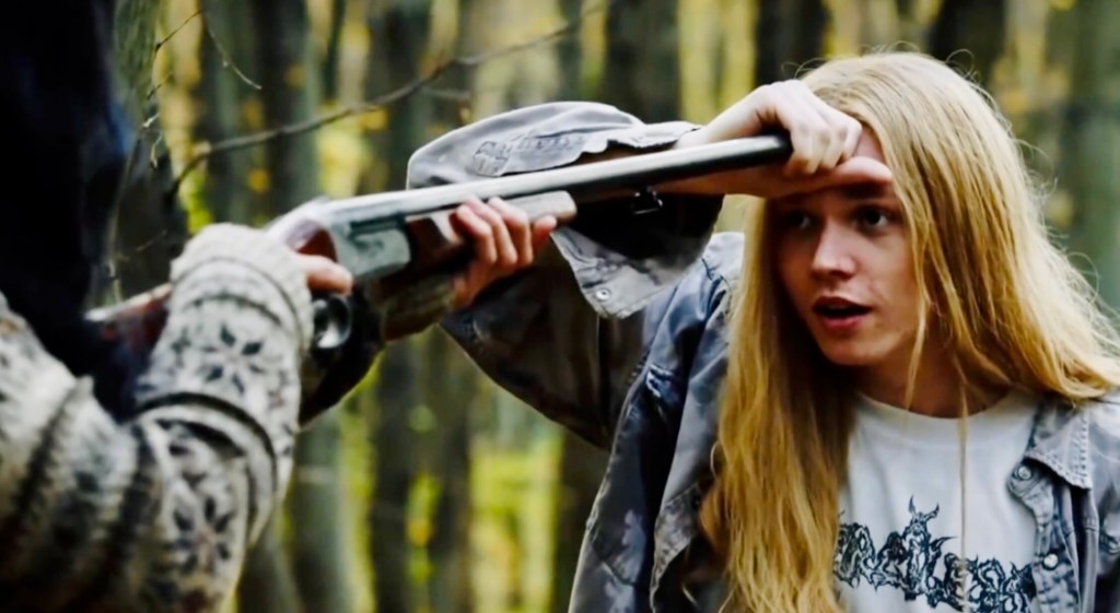 He arrives at the record shop, picking out a Scorpions vinyl and asks Euronymous ‘Why do you sell this shit … I thought this place was true metal?’ He replies ‘It is. I have music you can’t find anywhere else in the world. Just not on display for posers’. It’s a significant second exchange between the two characters with Varg aiming to exert dominance following his humiliation in their earlier scene, and with Euronymous retorting and strutting his peacock feathers in the process.
