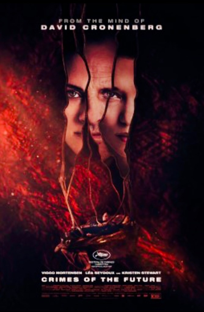 David Cronenberg (The Fly / Videodrome) is one of the legendary auteurs of Sci-Fi/Horror, who released a succession of classic movies from the early 70’s through to the late 90’s, which saw him dubbed the master of Body-Horror and with good reason. His style and use of visceral practical effects personified the genre especially in the 1980’s, but as a maturer filmmaker in the 2000’s he has largely moved away, choosing to focus more on melo-drama and character based movies. But then he drops Crimes Of The Future on us, which shares the title of a little known low budget film he made way back in 1970, and with a style close to many of his classic films.