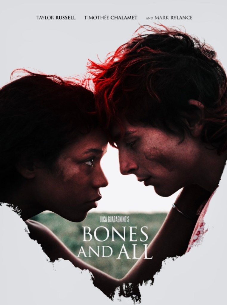 A rather bizarre but intriguingly dark love story, Bones And All is based on the novel by Camille DeAngelis and is directed by Luca Guadagnino (Susperia). The movie stars Timothee Chalamet (Dune) as Lee and Taylor Russell (Escape Room) as Maren, a couple of drifter teenagers who find each other and bond over their shared common ground … a taste for human flesh. The sinister quirk is introduced early and is particularly shocking when Maren, who at first seems as if butter wouldn’t melt, is at a sleep over with some friends. Without warning she takes a bite out of a girls finger, ripping its flesh from the bone before having to be dragged off of her victim. Returning home dripping with blood her father forces them to flee before the cops arrive, but the following morning her Dad has left her alone in the motel room they slept in. Leaving a tape explaining that he cannot stay with her anymore, and due to her unnatural appetite she will need to look after herself from now on.