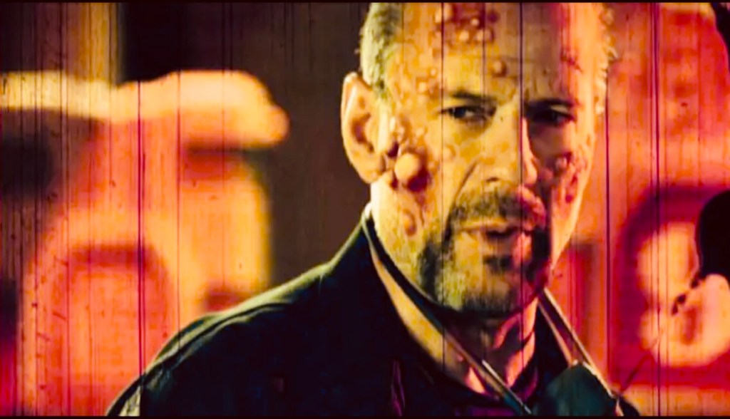 We learn that she is planning a life away from stripping, and she walks out on the club and makes her way to a BBQ roadside cafe owned by JT (Jeff Fahey– The Lawnmower Man) where she meets her boyfriend El Wray (Freddie Rodriguez – Dead Presidents). As she is walking down a dark road, a number of military vehicles pass her containing soldiers wearing gas masks. The convoy heads to an industrial medical facility where we learn ‘something’ has escaped, and Lieutenant Muldoon (Bruce Willis – Die Hard) is the military commander seemingly tasked with containing the outbreak.