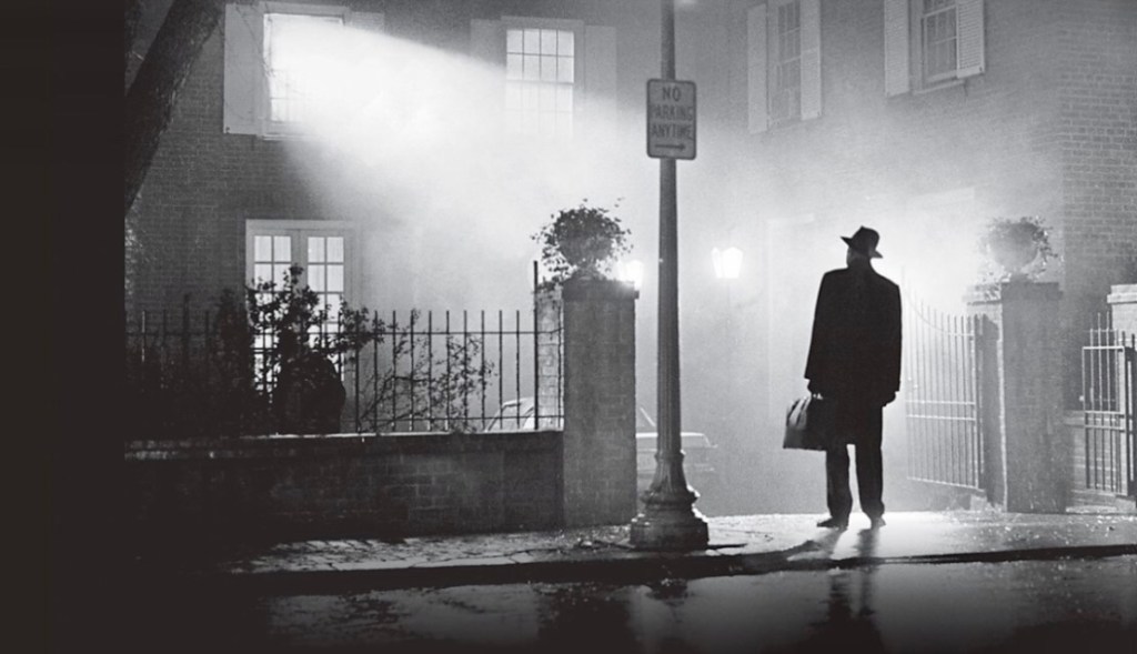 When they go back into her room Regan seems weak and the demon begins speaking to Karris in the voice of his mother. Father Merrin suggests he leaves the room and remains alone with the demon. When Karris returns to the room Merrin is laying dead. Karris attempts CPR but when it doesn’t work he attacks Regan summoning the demon to leave her body and take him instead. The demon obliges and his eyes change but while he still has the strength of his soul inside him, he leaps from the window in order to save Regan and kill the vessel of the demon … a thoroughly tragic ending for the priest.