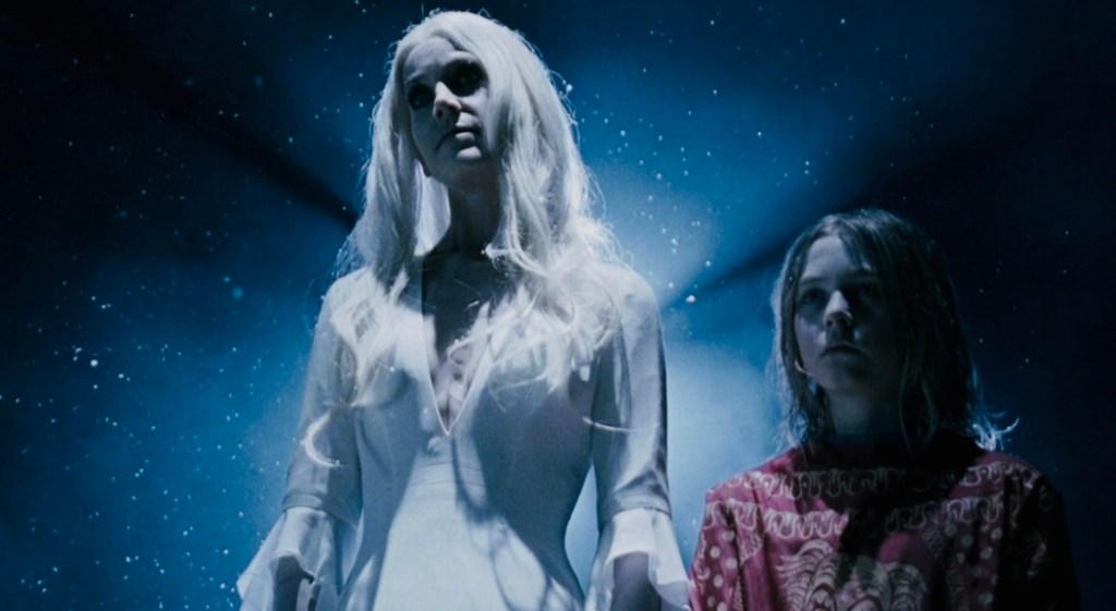 The paramedics engage in a horrific conversation regarding the joys of necrophilia, typically trashy Rob Zombie dialogue, before they hit a stray cow in the middle of the road and crash. Michael awakes and exits the ambulance, picking up a shard of broken glass he decapitates the one surviving injured paramedic in a truly brutal scene of visceral body-horror, before walking down the road towards a vision of his angelic looking mother with the white horse.