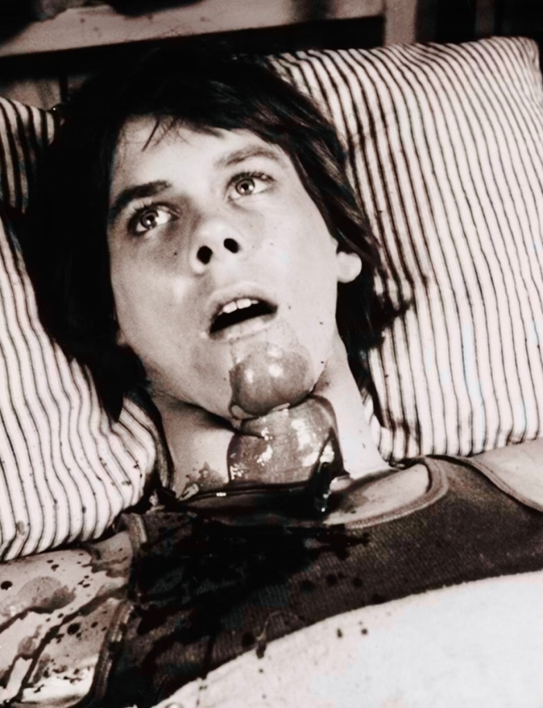 While composer Harry Manfredini creates a very Psycho (1961) like score, to help capture the classic-Slasher mood. Friday The 13th also provided an early outing for a young Kevin Bacon, who is killed in the most hideously memorable fashion, and would of course go on to be one of the leading young actors of the eighties and nineties – starring in such films as Footloose (1984), Tremors (1990) and Flatliners (1990). It would also star vintage American TV actress Betsy Palmer as Pamela Vorhees, and a final act twist (spoiler!) unveiling her as the killer. The final sequences also very much evoke Hitchcock’s Psycho in their tone and delivery, as Pamela talks to herself as Jason; “Kill her Mummy!”