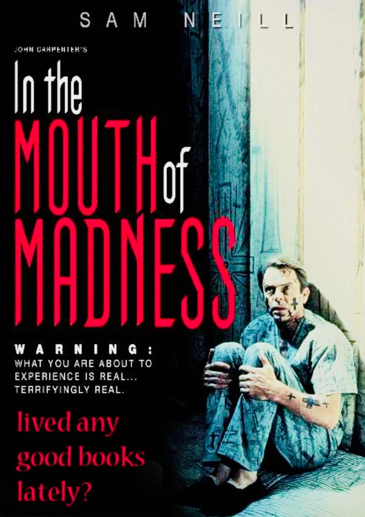 A pumping Metallica-esq riff opens what is arguably Horror-master John Carpenter’s (Halloween / The Thing) finest, and thoroughly weirdest film of the nineties. The film-maker is quite rightly a legend of the genre. His run from the late seventies to the late eighties is one of the best in the business, but it is argued that the quality of his output began to dip in the following decade, as Carpenter ultimately appeared to become somewhat disillusioned with Hollywood. In The Mouth Of Madness begins with protagonist John Trent (Sam Neil – Jurassic Park) being dragged kicking and screaming to a cell in a psychiatric hospital.