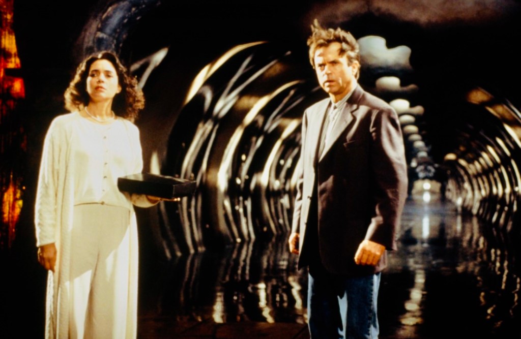 He begins experiencing horrific flashbacks, before being visited by a psychiatrist, with whom he begins to tell the story of how he has arrived there. Trent is an insurance investigator, played as a film-noir style private detective, who is asked to investigate a claim that has been lodged by a publishing company. The case is that of a missing renowned Horror-author – Sutter Cane (Jürgen Prochnow – Dune) – who has disappeared along with the final manuscript of his soon to be released, highly anticipated new novel – In The Mouth Of Madness.