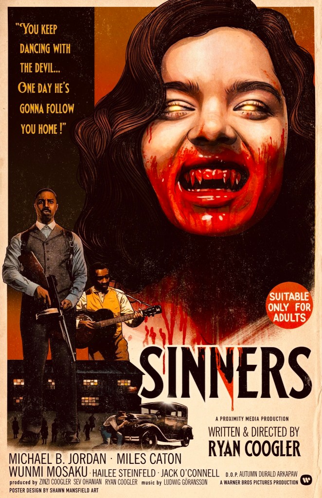 Sinners is one of the surprise hit films of 2025 so far, taking around $350m in its first six weeks of box office. Not at all bad for an ambitious period Horror movie which cost approx $90m to make, proving that the Horror genre is absolutely red-hot right now. Written and directed by Ryan Coogler (Black Panther), Sinners stars Michael B. Jordan (Creed) in a duel role playing twin brothers Smoke and Stack, two hoodlums returning to their small rural Louisiana hometown in 1932, full of bravado and stolen cash after spending some-time away working for the Mob in Chicago. They purchase a disused saw-mill from a rascist landowner, and set about creating a juke-joint with the help of a handful of old friends..