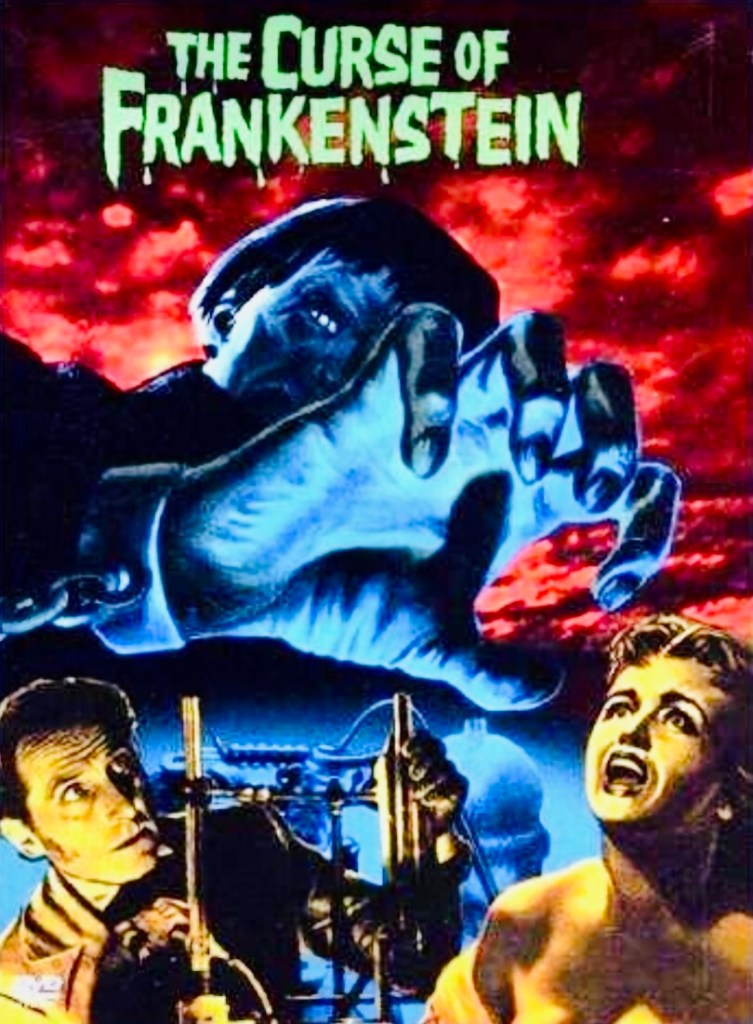 But some years later on the other side of the pond over in England, a new revolution in genre film-making would take place courtesy of Hammer Film Productions. And in 1957, they would remake the story of Frankenstein and his creation with The Curse of Frankenstein. Directed by Terence Fisher, Peter Cushing would star in the lead role reverting to Mary Shelley’s original name of Victor Frankenstein. While Christopher Lee, who would play Count Dracula for Hammer the following year, plays The Creature.