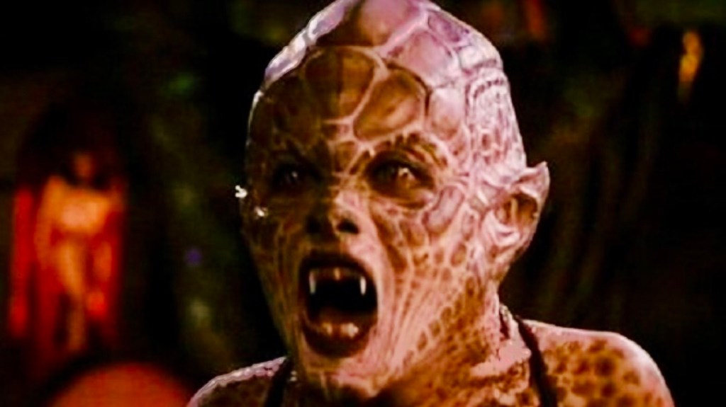 From here they head to The Titty Twister, an all night trucker / biker bar and strip joint, where they plan to hold up for the night prior to a rendezvous with their criminal associate in the morning. And it’s from here, that things start to get real interesting! As the criminals and their kidnapped family hunker down in amongst the madness of The Titty Twister, they (spoiler alert!) find themselves in a fight for survival. As it turns out the bar is a front for a nest of blood-thirsty Vampires; who like nothing more than to chow down on the clientele the venue attracts each night.
